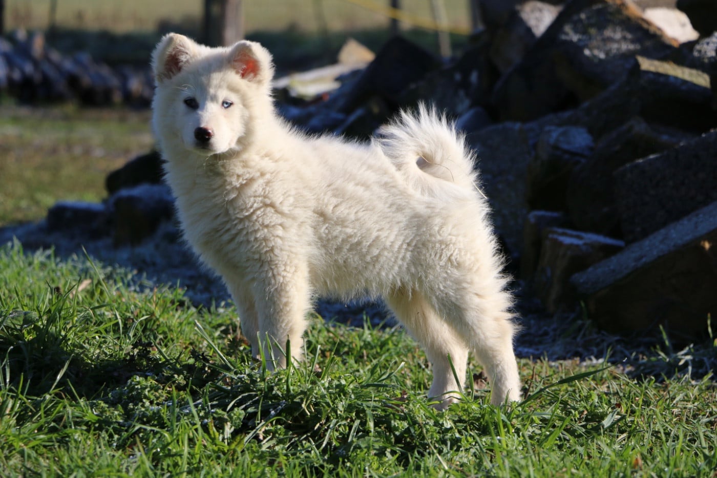 Moon est un chiot très très joueur. Il cherche le contact avec l'humain et aime rapporter un jeux pour se donner de l'attention. Il est de couleur sable et blanc et ses deux yeux bleus lui donne un regard charmeur a tomber. Il a un petit caractère bien a lui mais cela fait son charme. Comme ses autres frères et soeur il est sociabilisé aux enfants et aux animaux de la ferme.